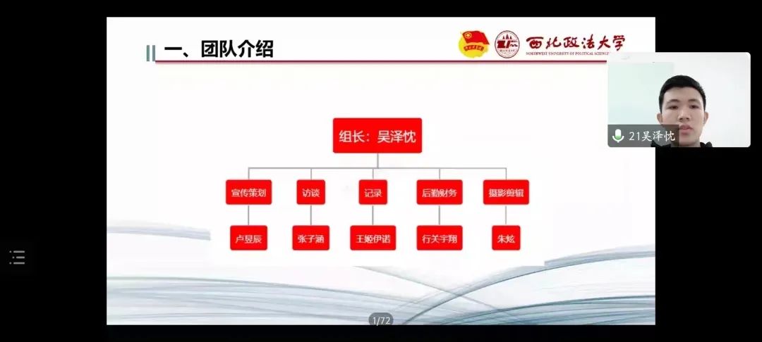 实践队队长吴泽忱对团队进行了介绍。实践队中除他本人外,还有五名成员分别负责宣传策划、访谈、记录、后勤财务、摄影剪辑。正是在这六位同学的默契配合、学院指导老师的耐心帮助下,该小组的实践活动取得了令人满意的成果。