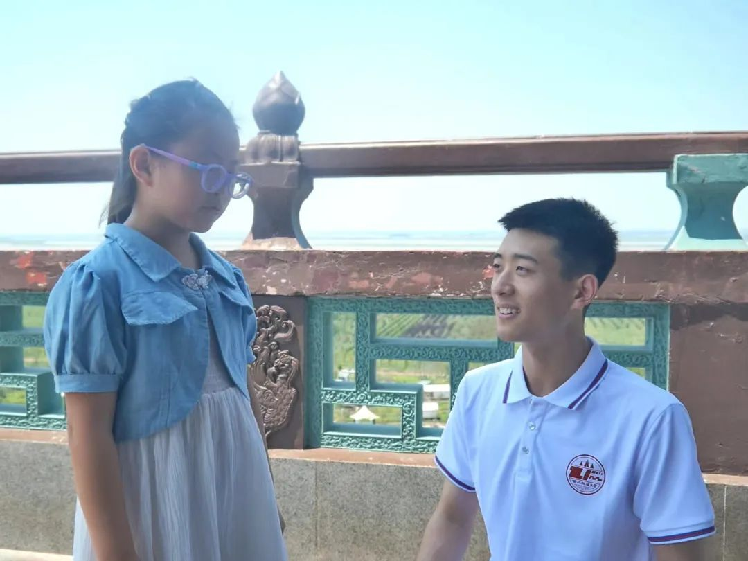 侯子跃同学就黄河的重要性和《黄河保护法》中的相关法律条文,向景区内游客进行知识普及。