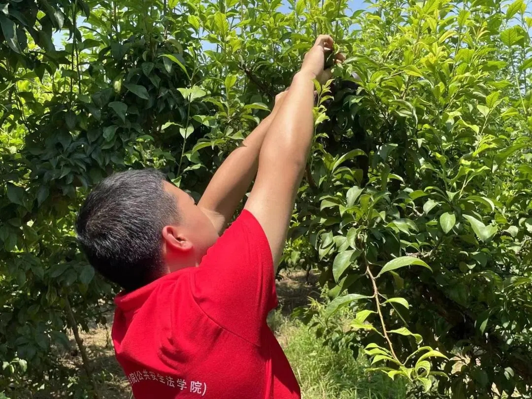 立体循环调研完成后,正值村中农户水果成熟时,调研小组又前往村中果园和果农们一起收获梅子,装箱上车,共享丰收成果。