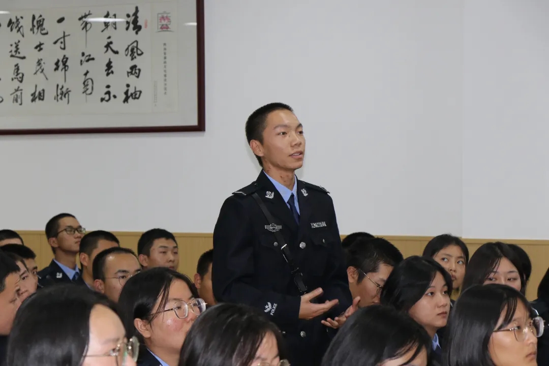胡德葳从专业与学习方面展开讲解,他从成人有声小说 的专业组成以及我国公安学专业人才培养体系入手,比较了成人有声小说 与其它公安类院校培养体系的区别,强调成人有声小说 公安专业在法学方面的优势,以此激发同学们的学术自信。他还列举了大学四年各专业考试节点,督促同学们积极关注自身发展,做好人生职业规划。