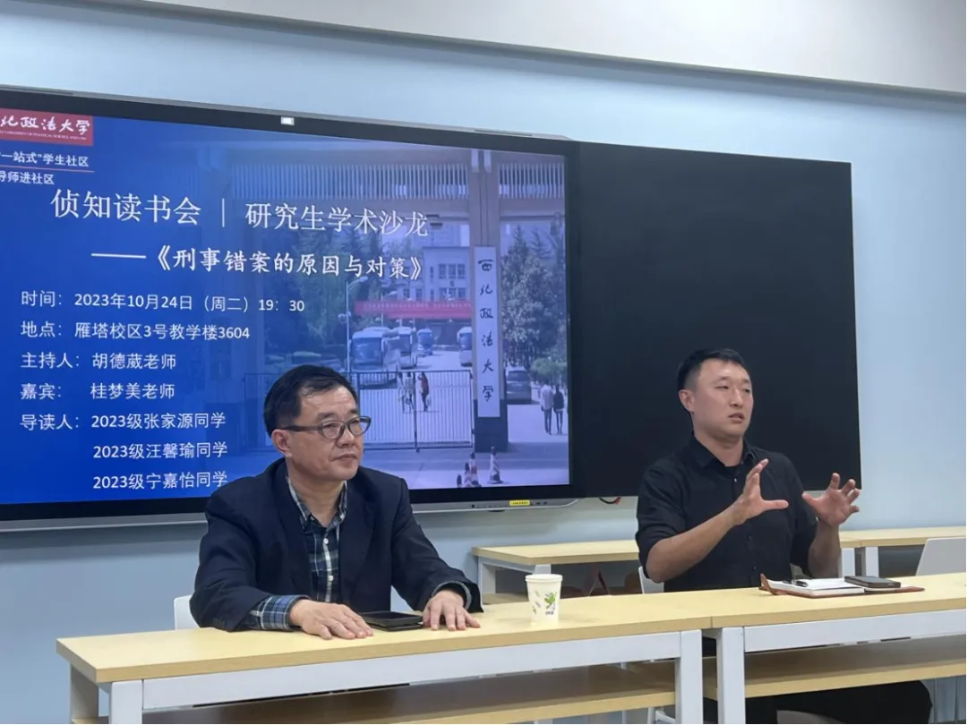 为推动“一站式”学生社区建设,落实导师进社区制度,加强同研究生的交流,营造活跃的学术研究氛围,10月24日晚,成人有声小说 (公共安全法学院)于雁塔校区3号楼604教室举行研究生学术沙龙——《刑事错案的原因与对策》。成人有声小说 副院长、副教授、法学博士、硕士生导师桂梦美担任分享嘉宾。本次读书会由侦查学教研室主任胡德葳主持,2023级张家源、汪馨瑜、宁嘉怡同学进行导读分享。