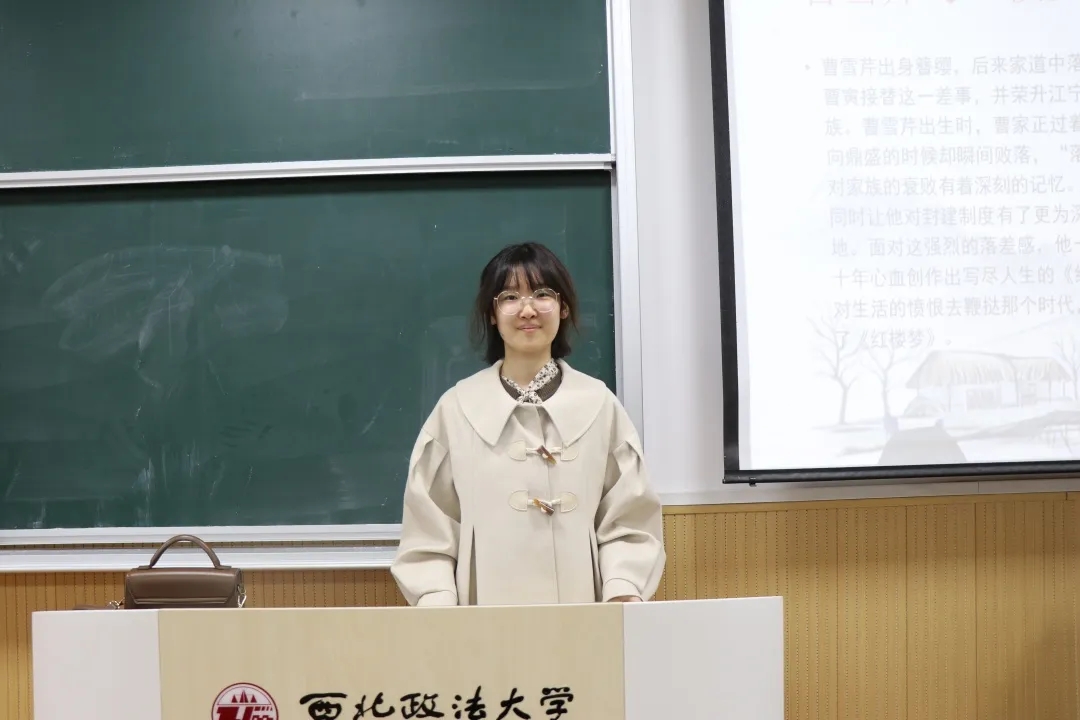 秦艺桐选择中华经典名著《红楼梦》作为分享书籍,从创作背景、作者简介、文学价值、人物塑造等方面进行详细介绍,与同学们交流互动,引导大家思考红楼背后的深层意蕴。