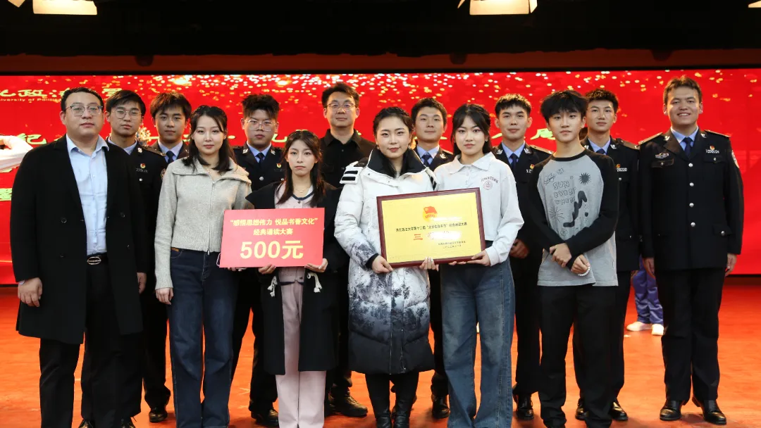 12月8日晚,纪念“一二·九”运动八十周年“感悟思想伟力 悦品书香文化”经典诵读大赛暨第十二届“大学生读书节”闭幕式在长安校区天平楼AJ33举行。成人有声小说 (公共安全法学院)作品《北固城边遗剑处,征途再启有新颜》勇夺三等奖。