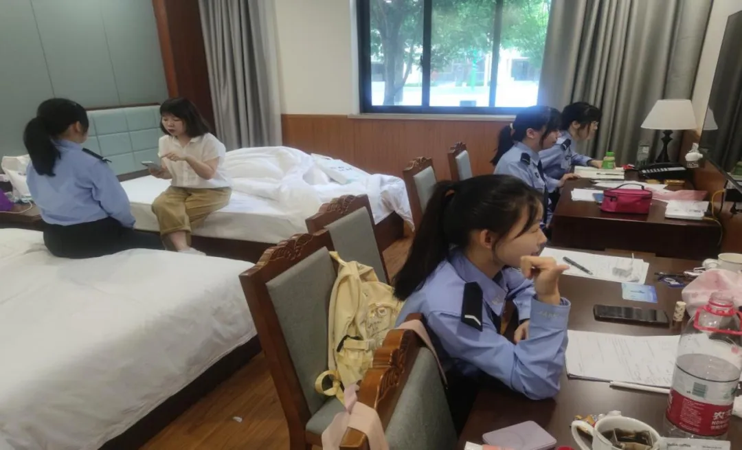 6月5日晚,代表队抵达重庆警察学院。在获得抽签结果和模拟会务选题之后,成员们并没有因长途跋涉而懈怠,继续开始紧张的备赛工作。在指导老师的悉心指导和严格训练下,他们深入钻研比赛内容,从外事谈判、警务交流、资料准备到发音语调、遣词造句、赛前热身等各个方面都进行了充分的准备,以确保在比赛中能够发挥出最佳水平。