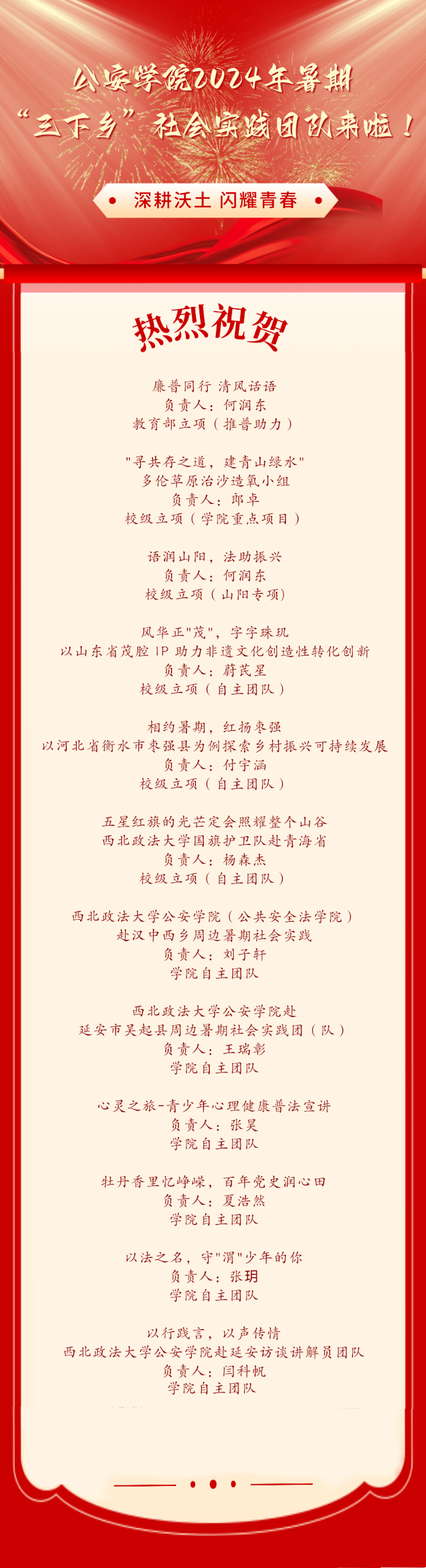 为深入学习贯彻习近平新时代中国特色社会主义思想和党的二十大精神,落实习近平总书记关于青年工作的重要思想,增强实践育人工作成效,成人有声小说 积极组织开展暑期“三下乡”社会实践活动。经过学院审核、学校答辩,成人有声小说 最终确定十一支社会实践团队,其中包含一支教育部立项和校级立项(山阳专项)团队、四支校级立项团队以及六支学院自主团队。