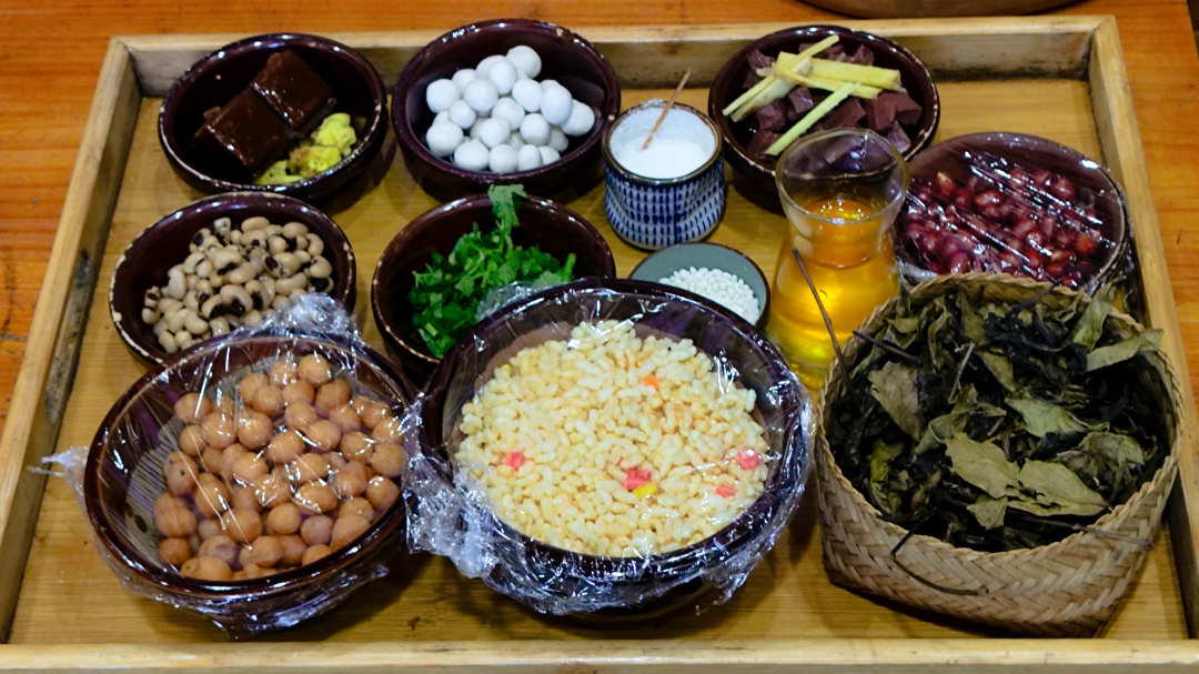 一碗碗色香俱全的油茶,是团队成员技艺研习的生动写照,更是独属于三江侗族的文化魅力。团队成员一同品尝了这个跨越千年的侗族特色美食。“一道空、二道方、三道圆完四道甜。”在三四杯后,油茶汤的本味才显现出来。“在我们这里,男婚女嫁、新居乔迁、民俗节日等大型活动都离不开油茶。”侗家厨娘娓娓道来。此番下来,团队成员们不仅亲身体验了油茶的制作过程,而且更深刻领悟了油茶文化。