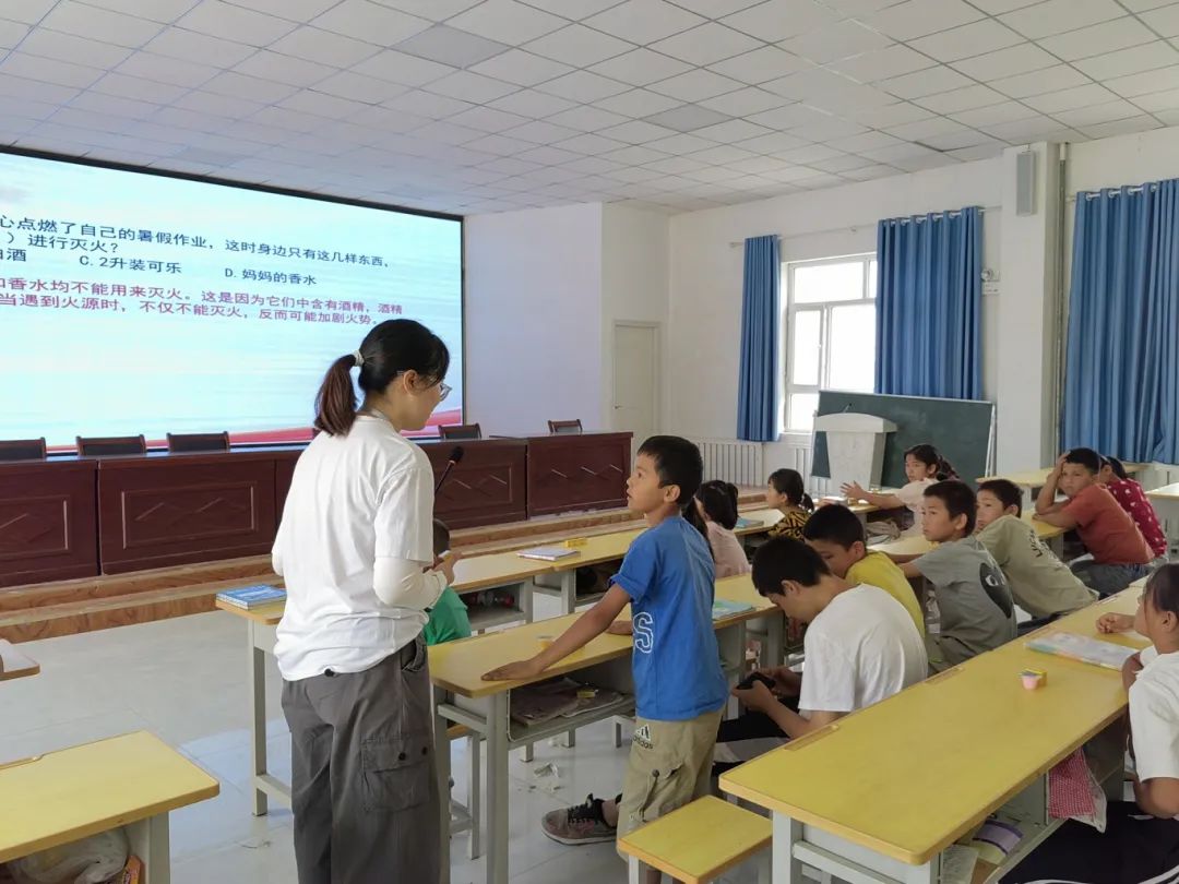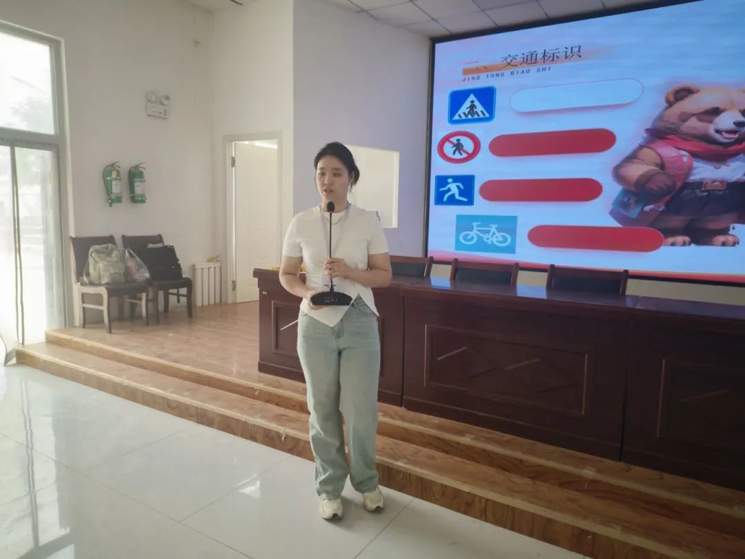 宣讲人杨瑞玥和刘思语分别围绕交通安全与消防安全开展专题讲座,帮助孩子们树立安全意识,提升自我保护能力。此外,讲座结尾还设置了有趣的互动问答环节,通过一问一答的形式,进一步加深了孩子们对安全重要性的认识,丰富了孩子们的自我保护技能。