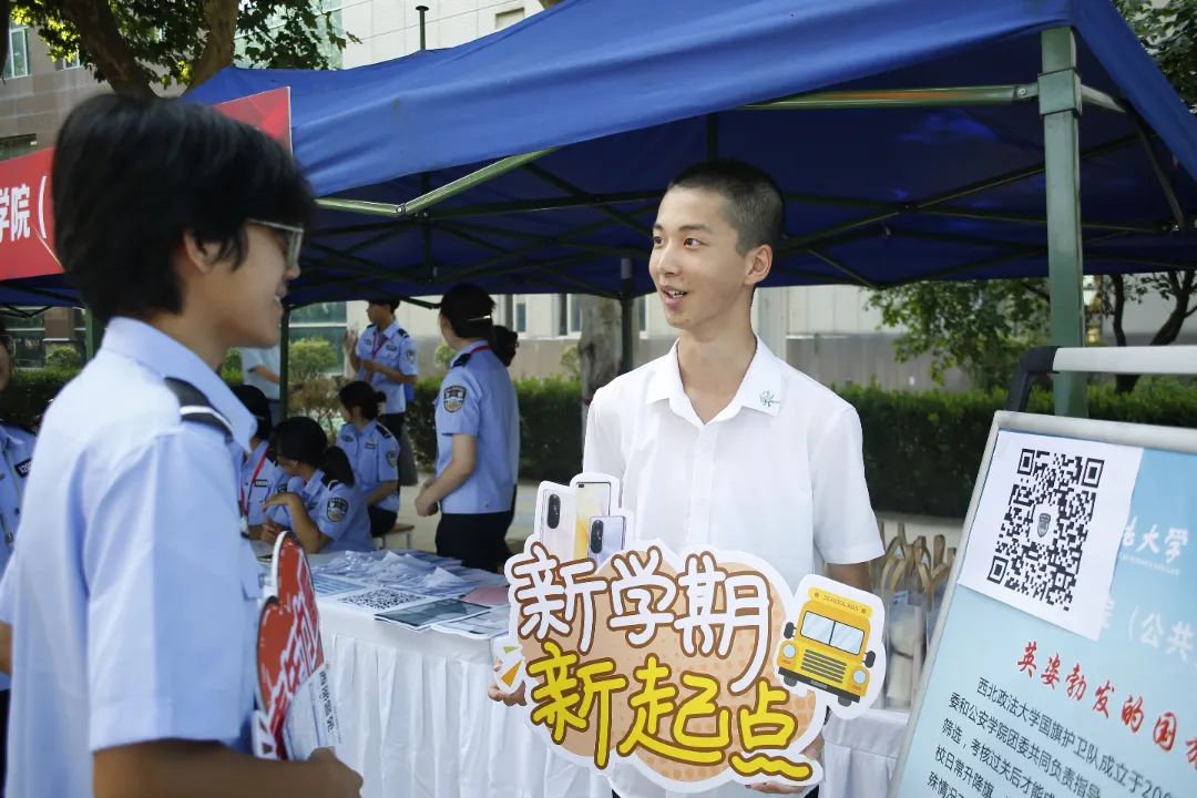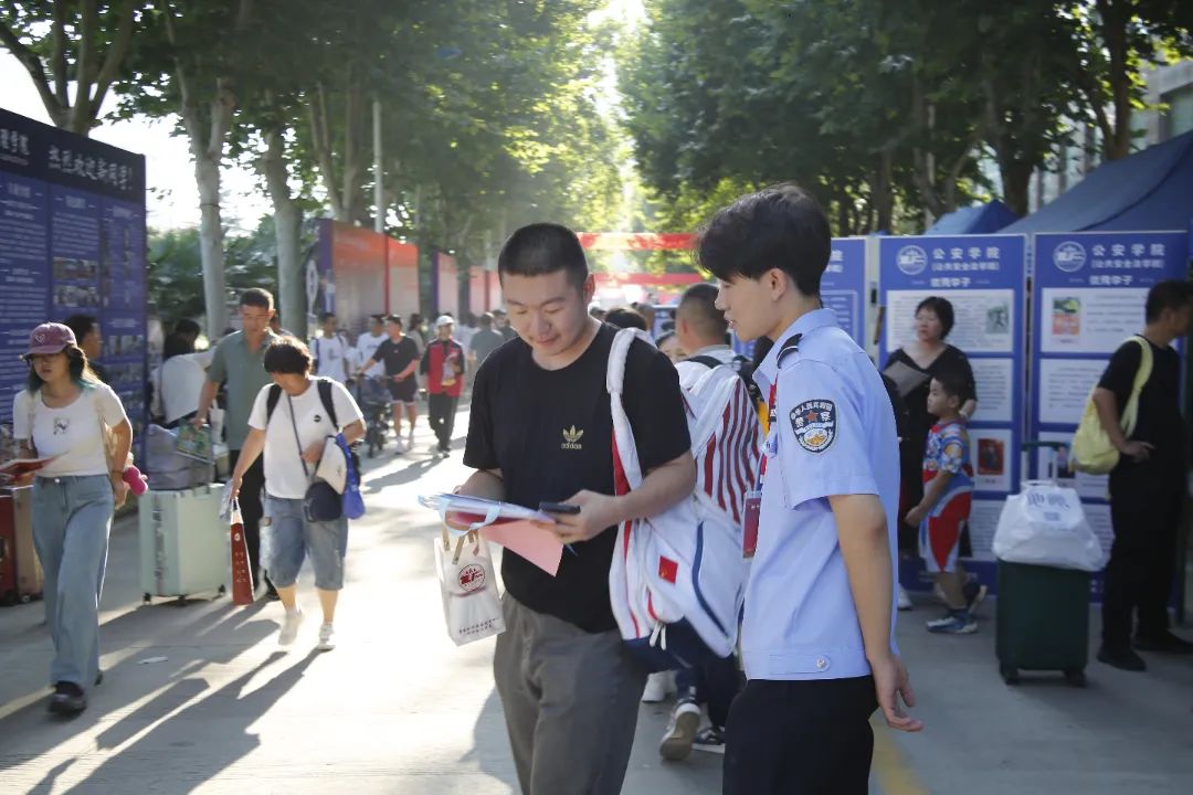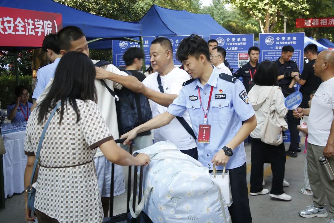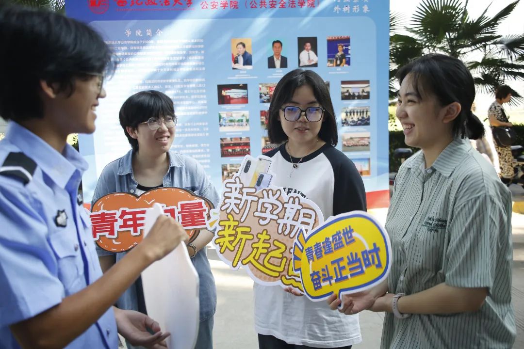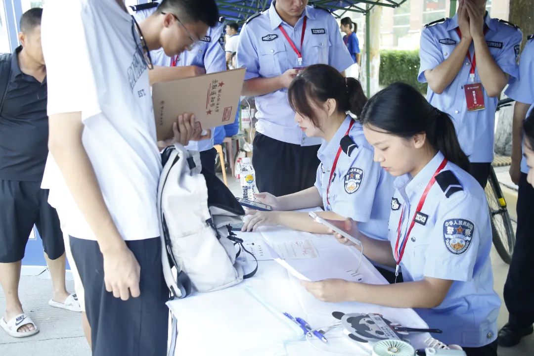 学长学姐们身着警服 齐聚报到处