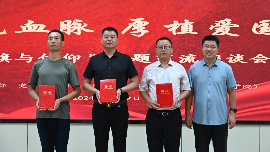 赵智勇、秦立为国旗护卫队带队干部颁发结训证书,李永宁为国旗护卫队指导老师颁发聘书。