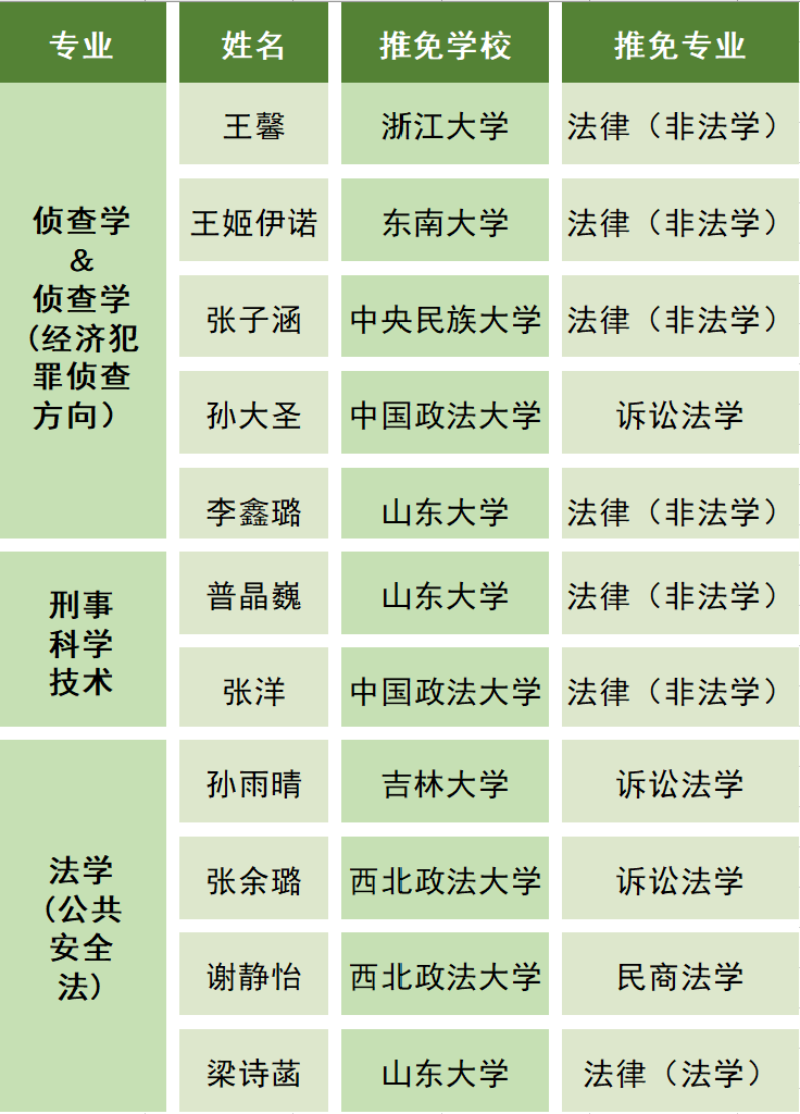 他们通过积极参与各高校组织的夏令营、预推免等考核,均已获得985或知名法学院校录取资格,具体录取结果如下: