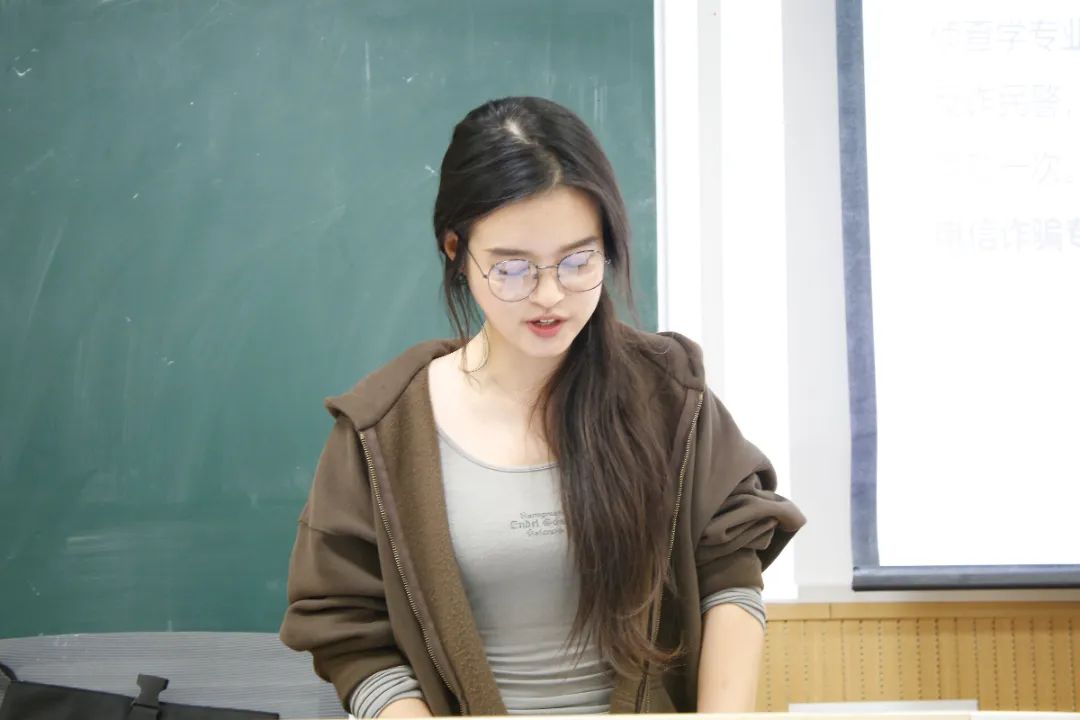董昊赟通过让同学们分享自己及身边亲友遭遇的电信诈骗经历,生动地引入了主题。她详细阐述了诈骗罪的四个构成要件,并解读了相关法律法规,特别是诈骗罪的定罪量刑标准。通过深入剖析,她引导同学们深刻理解诈骗行为的本质和危害,从而提升他们的防诈意识,为他们敲响了防范电信诈骗的警钟。
