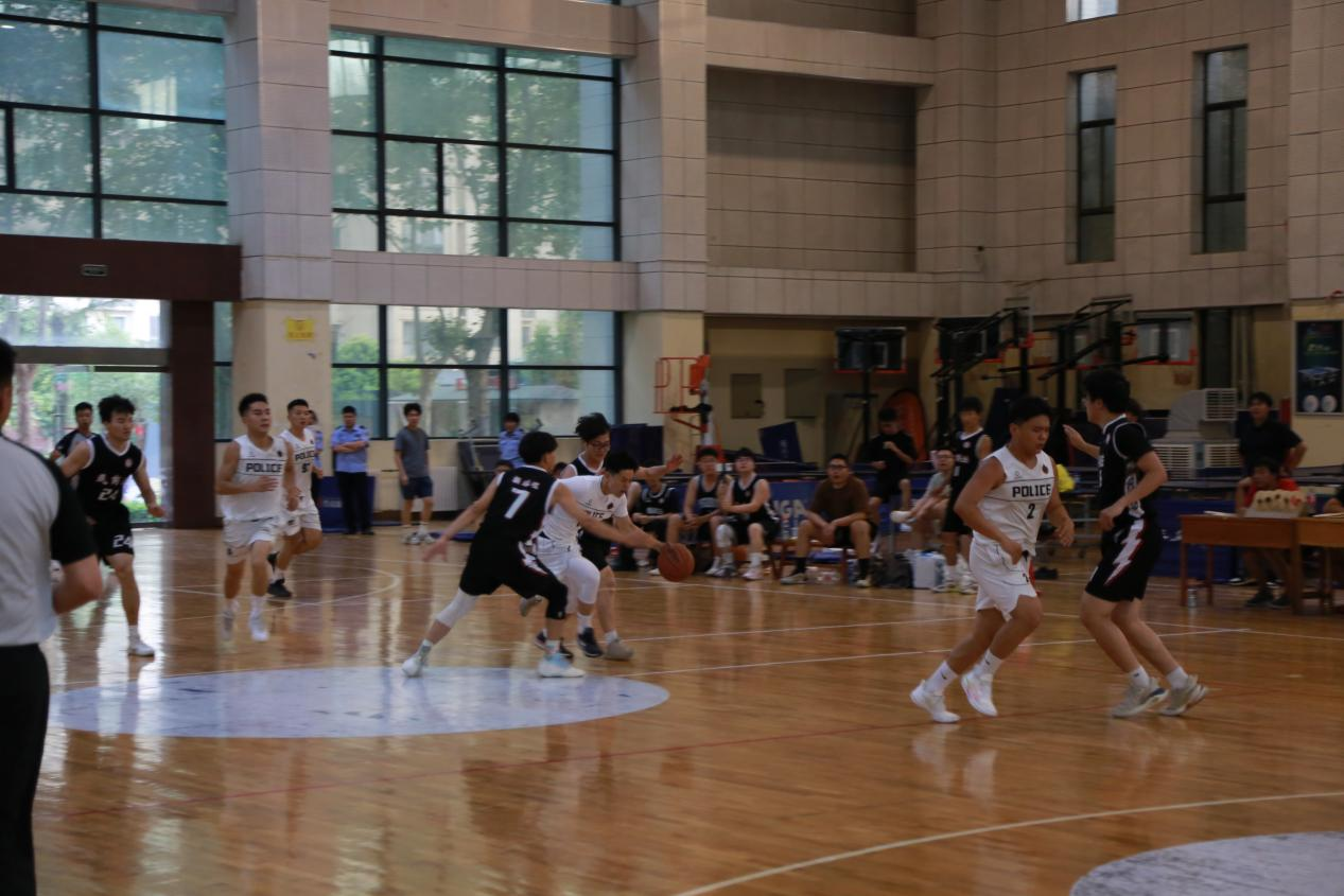 跳球过后,公安男篮率先发起进攻,十号苏柯熠不断冲击内线,造成多次杀伤,内线组合不断冲抢二次篮板进行补篮得分。双方在试探中结束首节,主教练胡德葳老师观察场上局势,迅速调整战术。第二节回来,公安男篮立足于防守,充分发挥不怕苦、敢拼搏的精神,进行人盯人紧逼防守,以重点防守队员领防、多人协防的防守模式,给对方不断施加压力。民商法学院同时调整战术,对方七号队员赖璟煜连续命中三分,为队伍止血。经过上半场攻防对决,比分保持在34:25,公安男篮暂时领先九分。