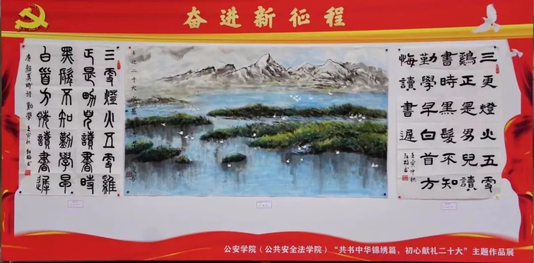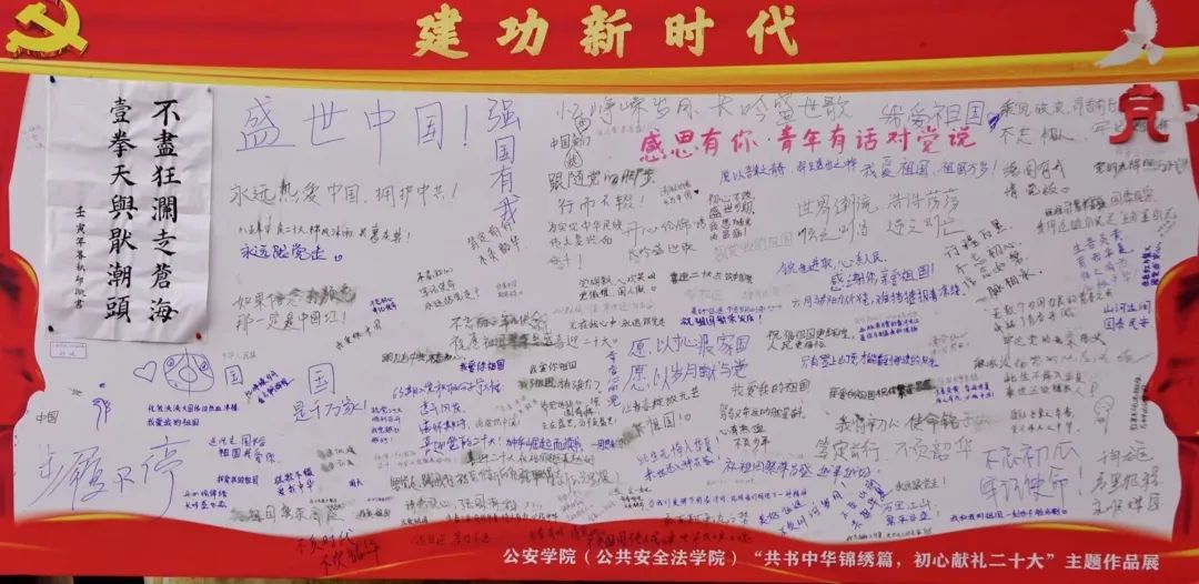 丹青书盛世,翰墨颂党恩。公安学子通过多种多样的艺术形式,以书言志、以画寄情,以影定格,铺华笺,运彩笔,用一幅幅充满赤诚之爱的艺术作品,喜迎二十大,歌颂新时代,奋进新征程!