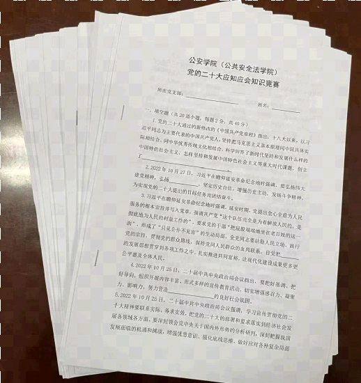 本次知识竞赛活动的题目重点围绕党的二十大报告,中国共产党章程以及习近平总书记系列讲话等方面设置。共有50道题目,其中选择题30道,填空题20道。学院辅导员、行政人员、教师参加本次活动。