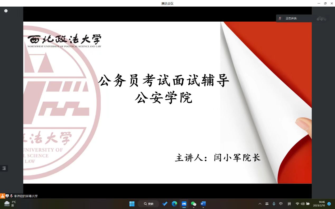 2月10日下午,成人有声小说 (公共安全法学院)2023届毕业生公务员考试辅导与就业工作动员会通过线上会议召开,成人有声小说 闫小军副院长、学院党委副书记李霞、2019级本科生辅导员李沛君、研究生辅导员张瑞、2023届毕业本科生与研究生代表参加会议。会议由李沛君老师主持。