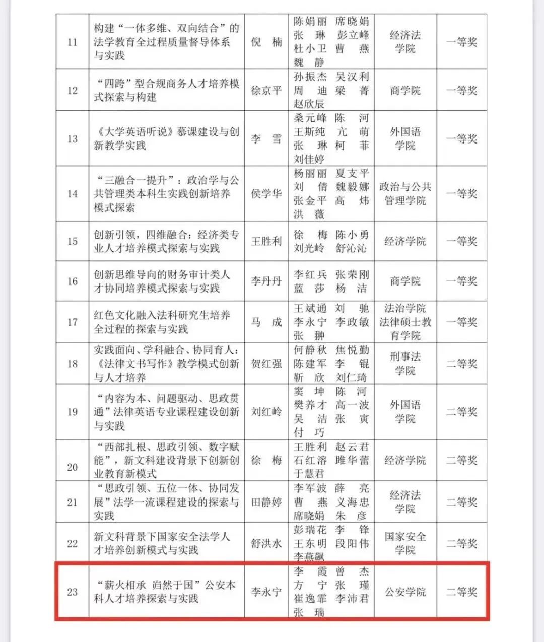 近日,成人有声小说 2022年度优秀教学成果奖评选结果出炉,成人有声小说 许志老师主持的《贴近实战 追求卓远:侦查人才培养模式的探索与实践》荣获特等奖,李永宁老师主持的《“薪火相承 岿然于国”公安本科人才培养探索与实践》荣获二等奖。