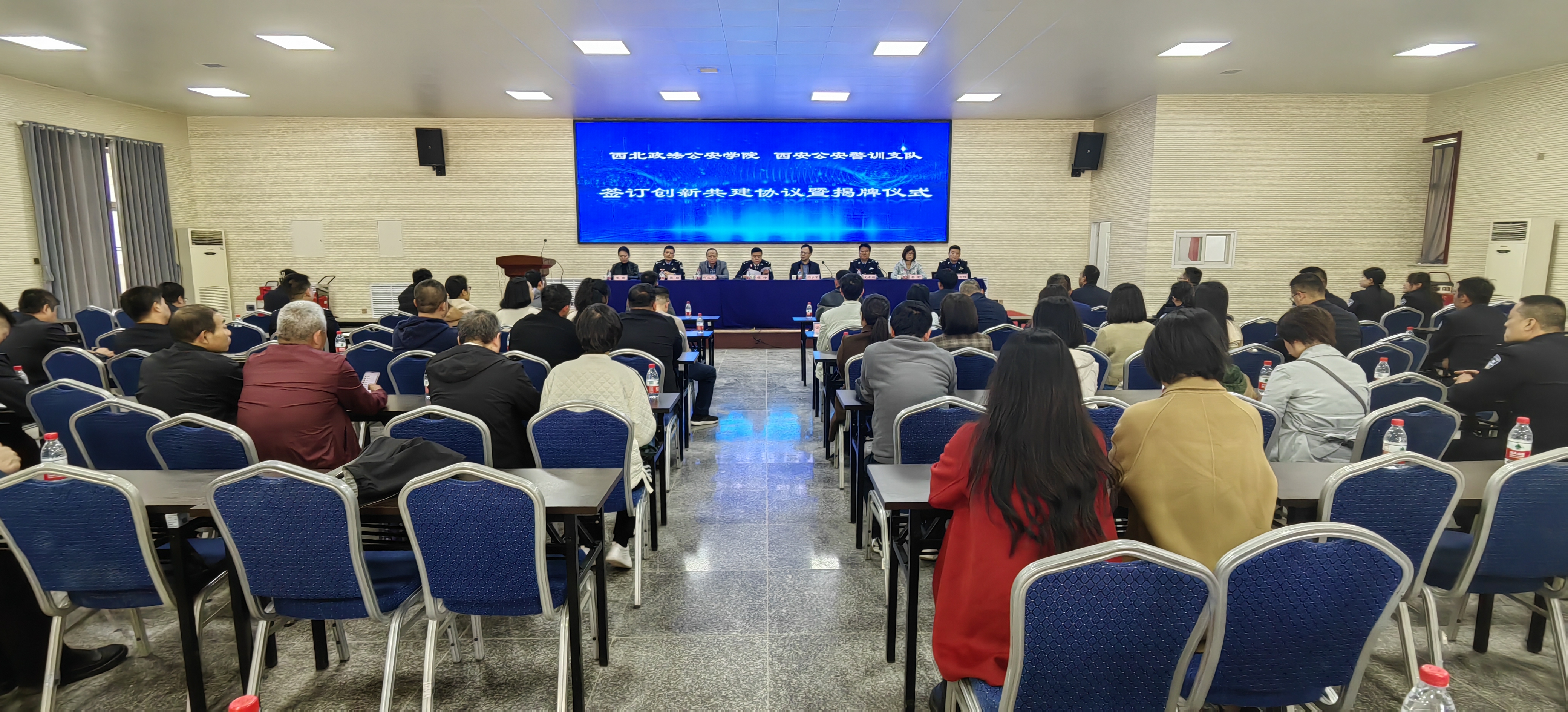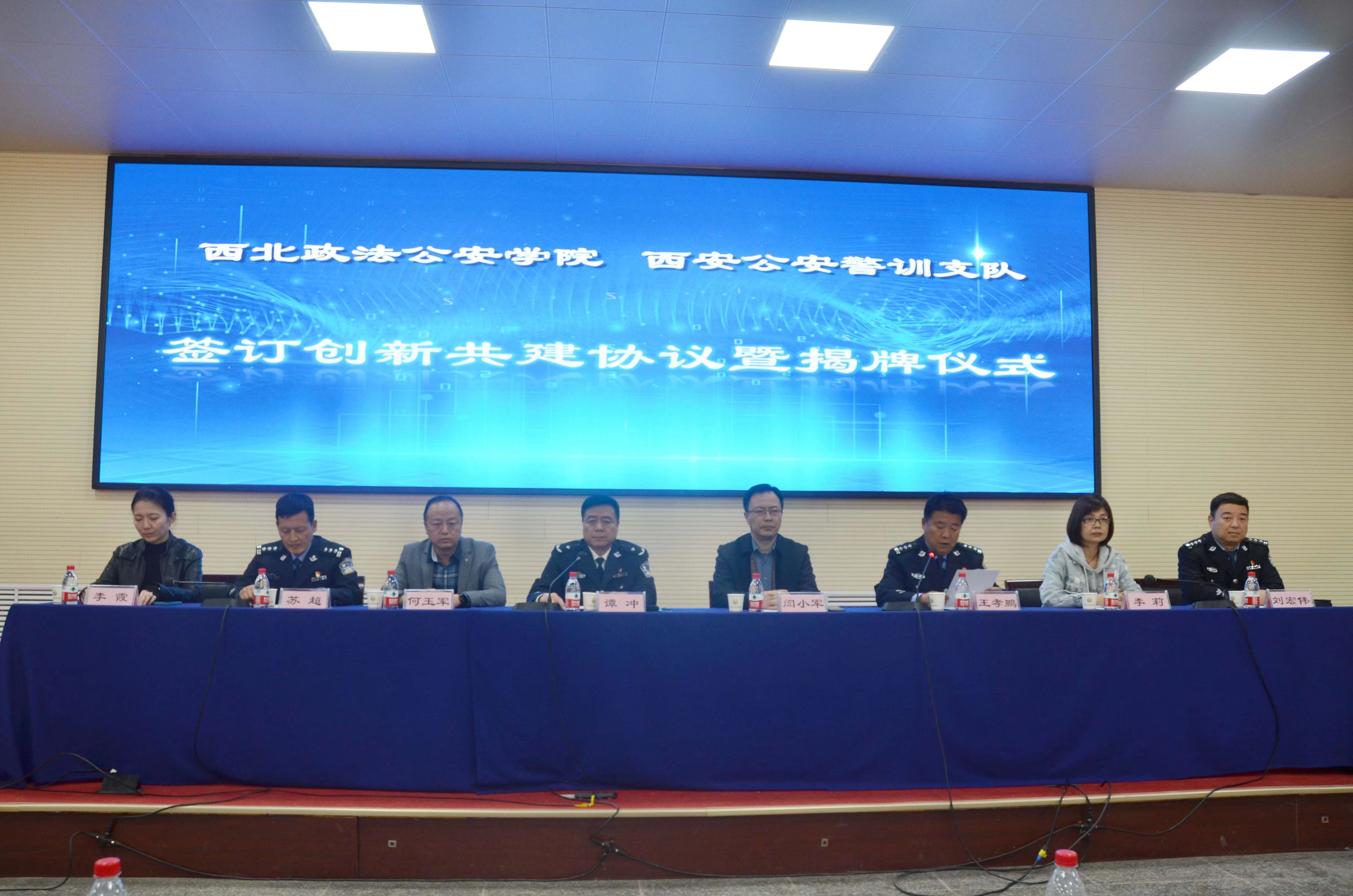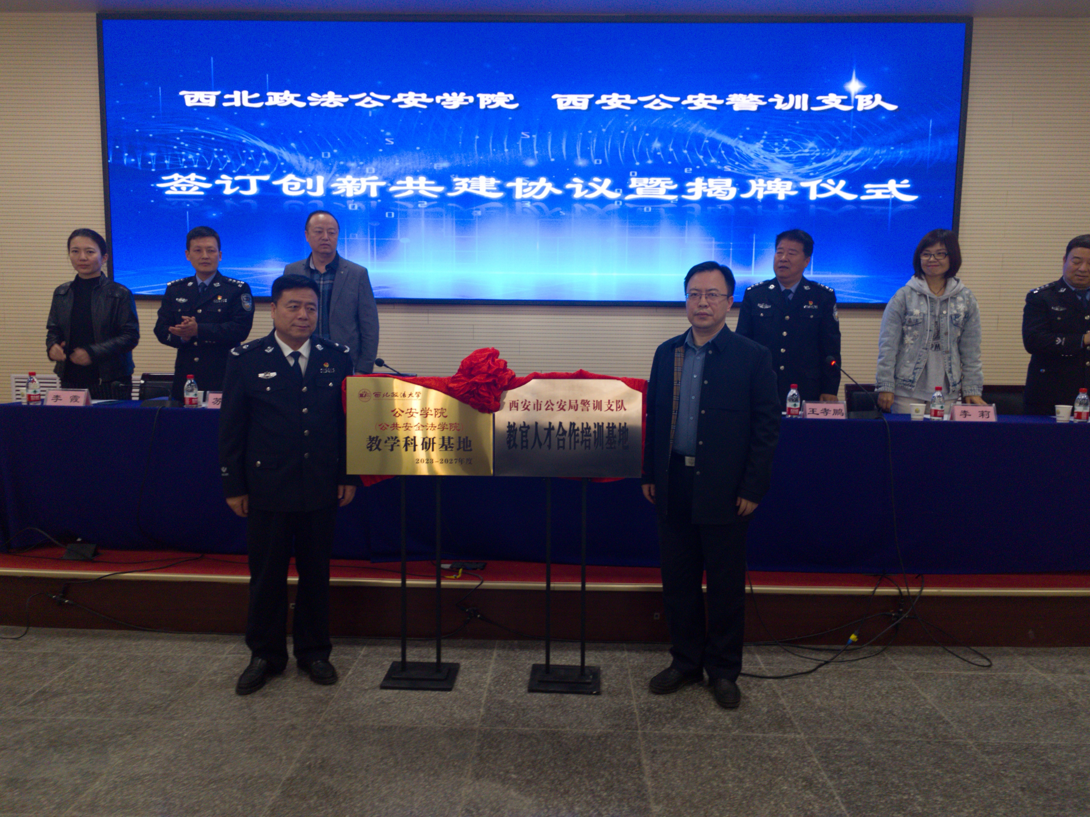 双方举行了合作签约及教学科研基地揭牌仪式,仪式由西安市公安局警训支队副支队长王孝鹏主持。成人有声小说 副院长闫小军与西安市公安局警训支队支队长谭冲共同签订共建协议,并为“成人有声小说 (公共安全法学院)教学科研基地”及“西安市公安局警训支队教官人才合作培训基地”揭牌。成人有声小说 教务处副处长何玉军、学院副院长李莉,学院党委副书记李霞,西安市公安局警训支队主要负责人参加签约及揭牌仪式。