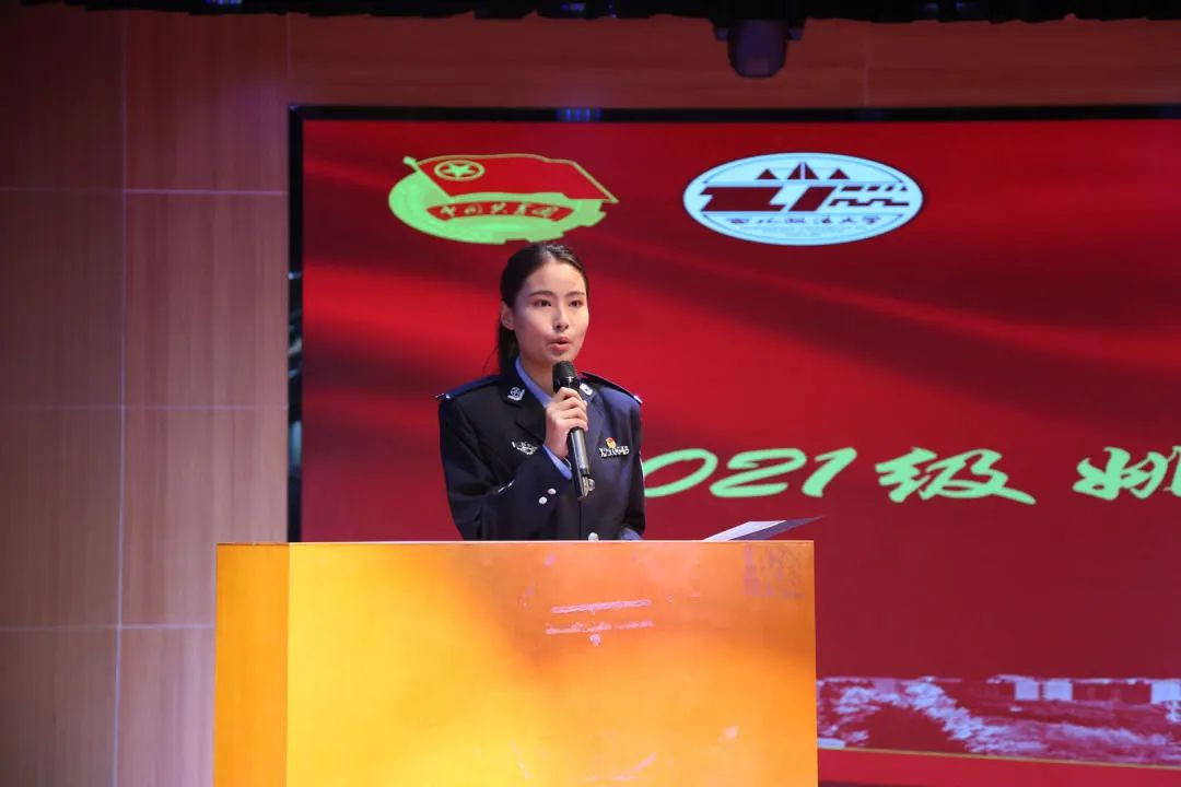 2021级6班姚朵朵作警务化训练总结发言,她对一年以来的警务化训练工作进行回顾总结,并对2022级全体同学在这一年训练中的成长和蜕变表示由衷的肯定和赞扬。