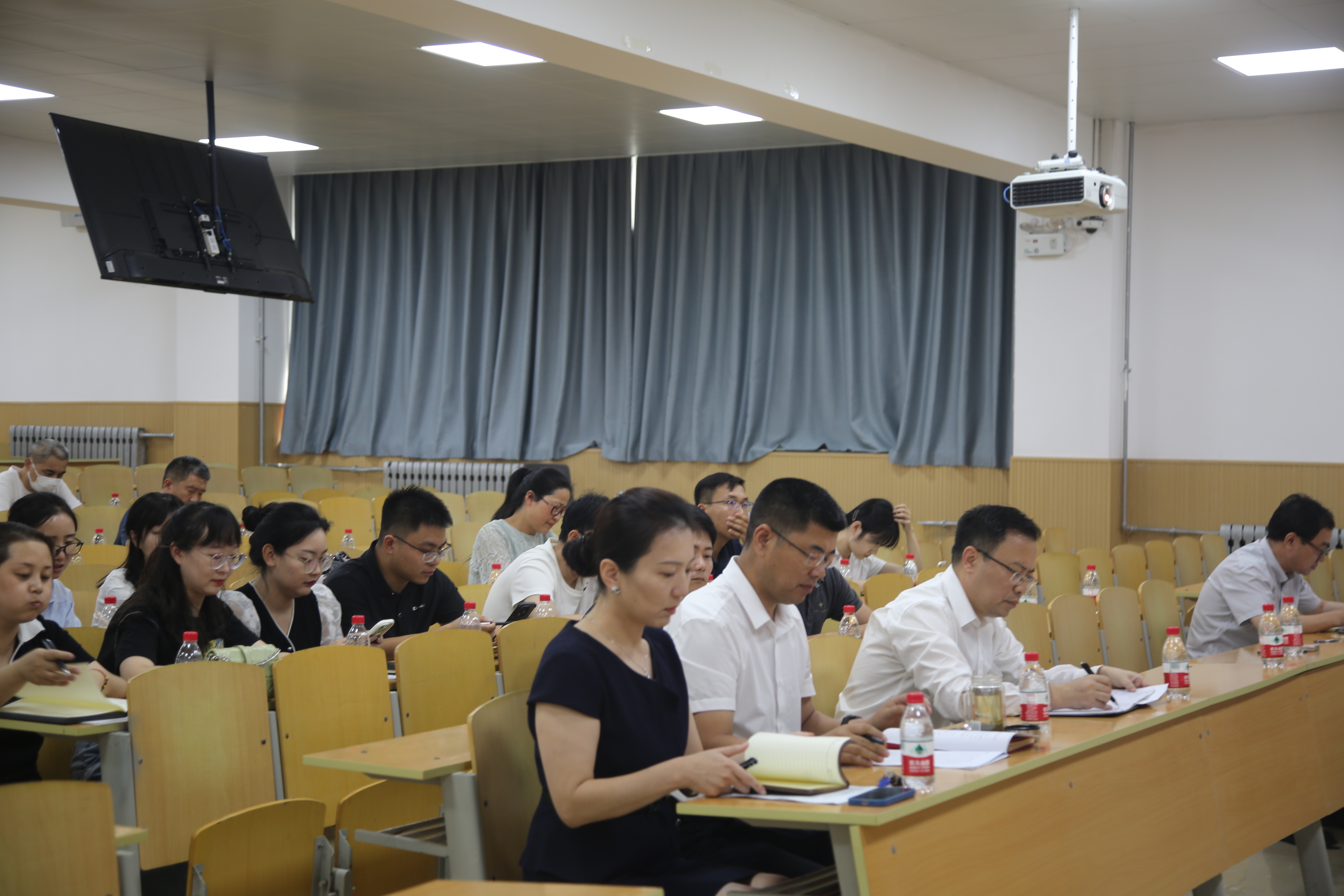 副院长李莉就学院上半年教学管理工作进行了通报总结,传达了本学期学校的教学重点工作任务和要求,结合本科教学审核评估工作要点,对学院迎评准备工作进行了安排。