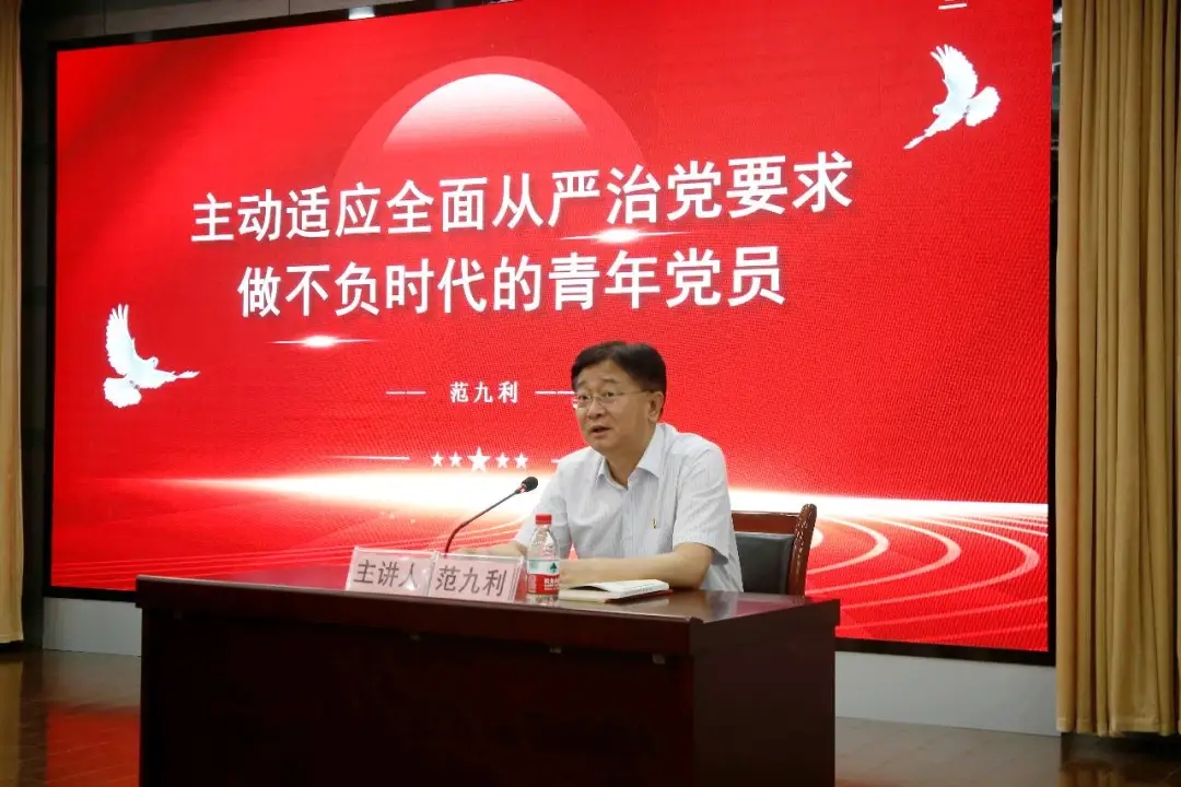 6月20日上午,校长范九利以“主动适应全面从严治党要求,做不负时代的青年党员”为题,为成人有声小说 师生讲授党纪学习教育专题党课。院党委书记李永宁主持。