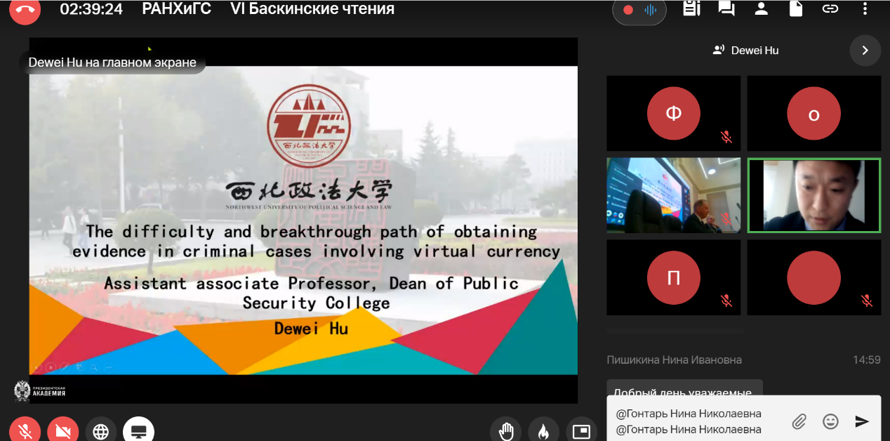 在线上学术研讨环节,成人有声小说 治安学教研室主任樊瑛副教授以《一带一路背景下中俄警务合作问题分析及改善路径》为题进行了俄语发言,侦查学教研室主任胡德葳副教授以《涉虚拟货币刑事案件的取证难点与突破路径》为题进行了英语发言,董昊赟博士以《涉众型经济犯罪打击、防范和风险化解机制》为题进行了英语发言。