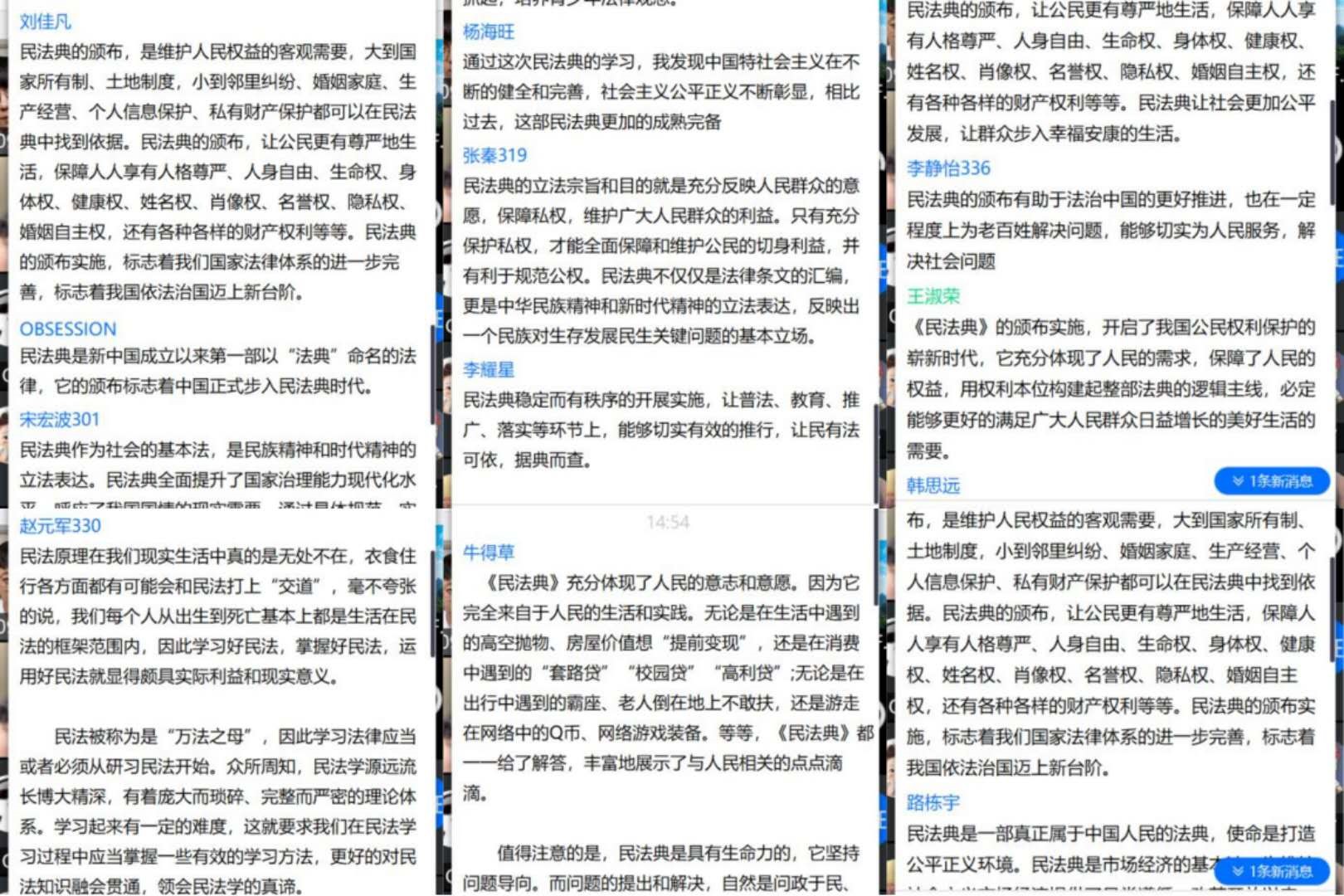 各年级同学在学习《民法典》的过程中,也纷纷发表了自己的意见和看法。