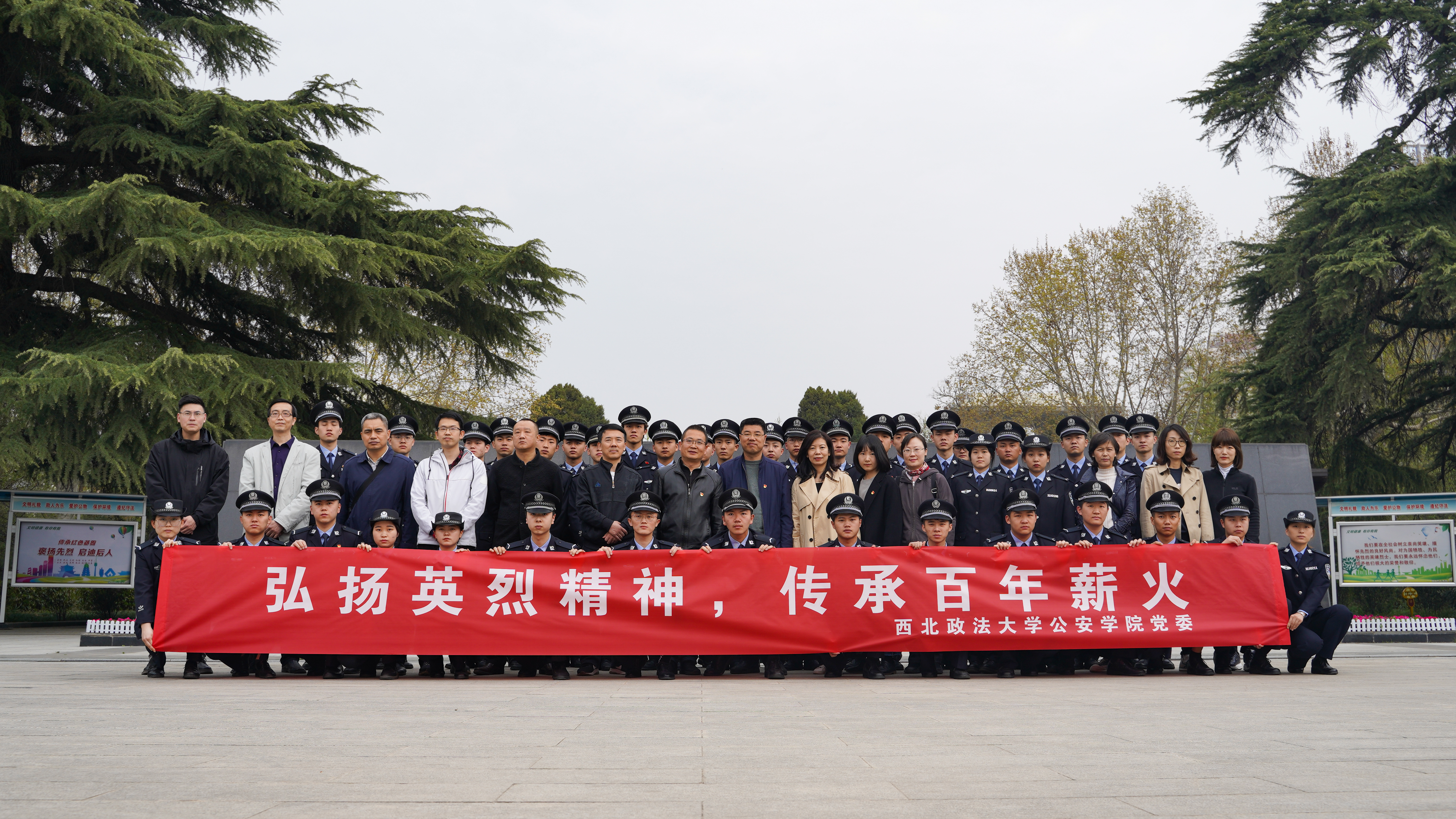 西北人民革命大学时期任校长的李敷仁烈士的墓碑前,师生代表轻拭墓碑,学生第一党支部书记赵静带领大家回顾了老校长的生平,深刻学习了他无私无畏,勤奋工作,矢志报国的革命精神,在场师生无一不为他“一滴血只要为人民流出,都不会白费”的铮铮铁骨而动容。