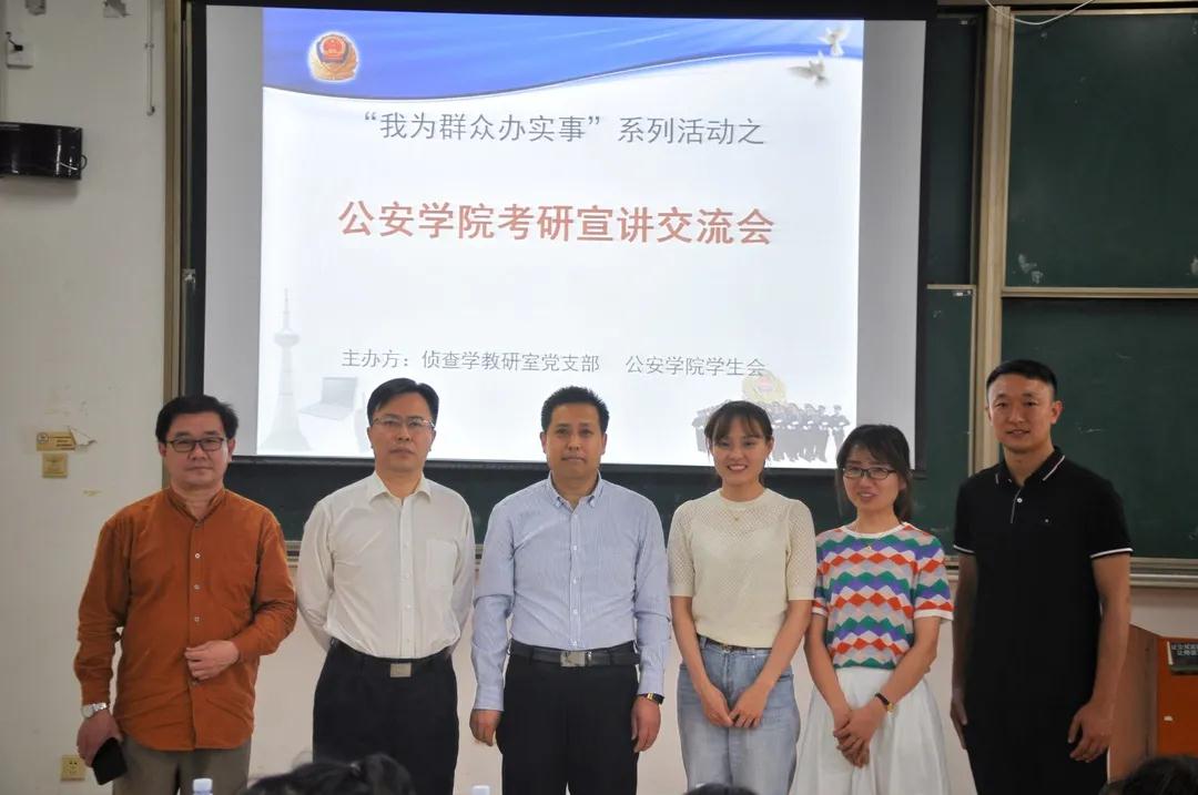 侦查学党支部在Aj21教室举办考研经验交流分享会,邀请学院侦查学党支部教师党员许志老师、闫小军老师、桂梦美老师、胡德葳老师,刑事科学技术党支部王霄老师、卫燕茹老师结合自身实际经历向同学们传授备考经验。侦查学党支部书记胡德葳老师主持此次分享会。