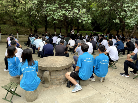中共七大会址,延安学习书院在中央大礼堂门口的柏树下进行党史学习,实践队全体成员怀着无比崇敬的心情与其进行集体学习,紧跟习近平总书记的步伐,认真贯彻落实习近平新时代中国特色社会主义思想,使其成为当代青年人前进的行动指南,回顾党的历史,挖掘党的七大精神以及毛泽东思想的现实意义,坚持党的优良作风,传承党的光荣传统,赓续党的红色血脉。