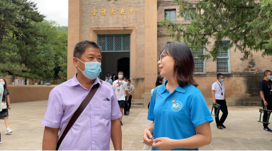 离别之际,实践队调查采访了游客参观杨家岭和中共七大旧址的感想,切身感受到了广大游客对中国红色文化的高度认同感和自豪感;为进一步体会延安红色精神,实践队就杨家岭革命旧址的具体问题同旧址管理处工作人员进行了深入讨论,工作人员向我们介绍了旧址的历史沿革以及中央大礼堂的建造过程,实践队全体成员从中体会到了八十多年前革命先辈们艰苦卓绝的优良作风,深刻领会到了自力更生、艰苦奋斗、实事求是、开拓创新的延安精神。
