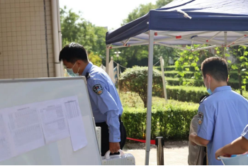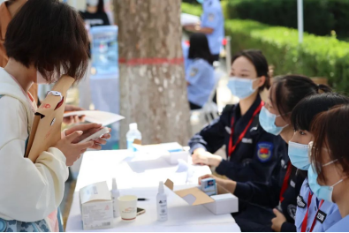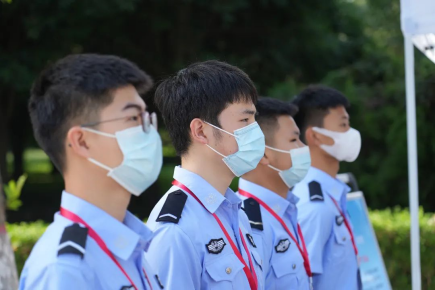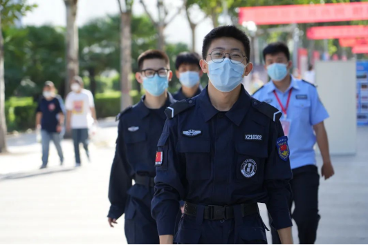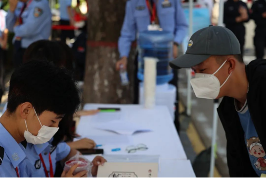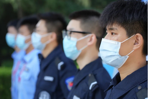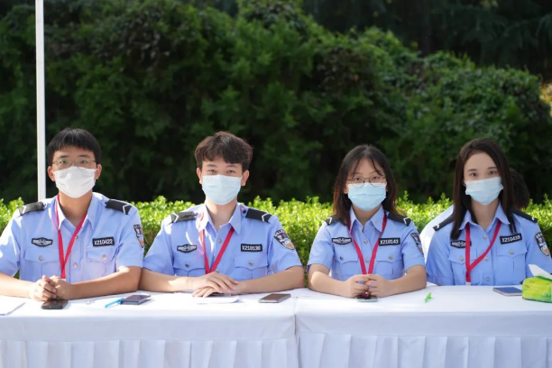 身着藏蓝警色的志愿者们