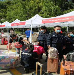 校园摆渡车已经将行李运至行李存放处