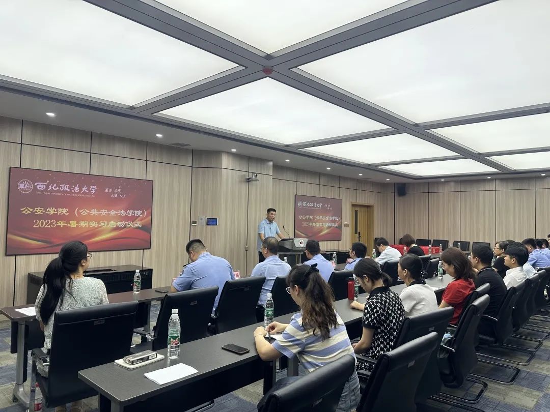 7月16日下午,成人有声小说 (公共安全法学院)2023年暑期实习启动仪式在五号楼401教室举行。西安市公安局新城分局胡家庙派出所所长韩浩、西安市公安局警察训练支队法律教研室主任杜永恒、国浩(西安)律师事务所律师侯若鹏、西安市公安局长安分局政工科科长梁明、成人有声小说 党委书记李永宁、副院长闫小军、副院长李莉、副院长桂梦美、教务办全体老师、实习指导教师以及学生代表参加。启动仪式由副院长李莉主持。