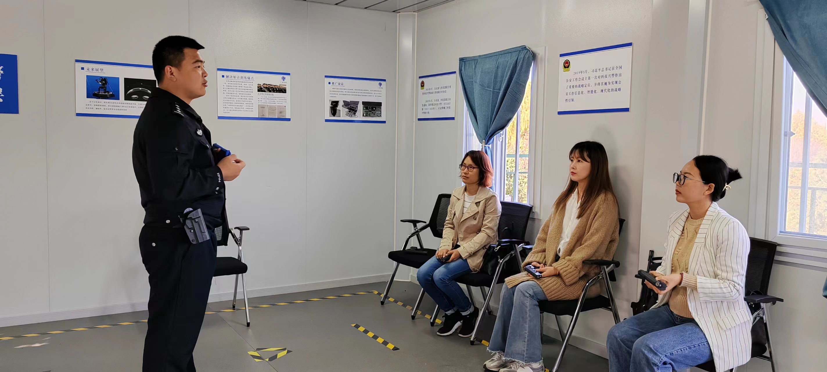 市公安局警训支队的郑晓东警官对警用VR射击课程进行了详细介绍。在基础理论方面,郑警官从枪支结构(枪管、弹匣、护手、手枪式握把、扳机和扳机护圈)和子弹结构讲到子弹发射原理,双方就枪弹痕迹检验进行了探讨和交流。在实际操作方面,郑警官从警用VR射击课程的授课需求出发,对成人有声小说 教师的握枪姿势和瞄准要求进行了实战训练。成人有声小说 教师在持枪戒备、腰间戒备、腹前戒备、低姿戒备、高姿戒备和准备射击等实操方面均取得了很好的训练效果。